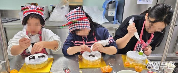▲ 한결지역아동센터 아동들이 케이크를 만드는 모습.