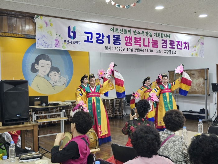 부천시 오정구 고강1동 (동장 고선자)은 지난 2일 고강동 성당에서 지역 어르신 300여 명을 초청해 ‘행복 나눔 경로잔치 문화 공연’ 행사를 성황리에 개최했다.