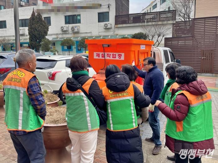 부천시 오정구 고강본동(동장 유복동)은 지난 8일, 겨울철 폭설에 대비해 자율 방재단원들을 대상으로 ‘트럭 적재형 제설제 살포기’ 조작 교육을 했다.