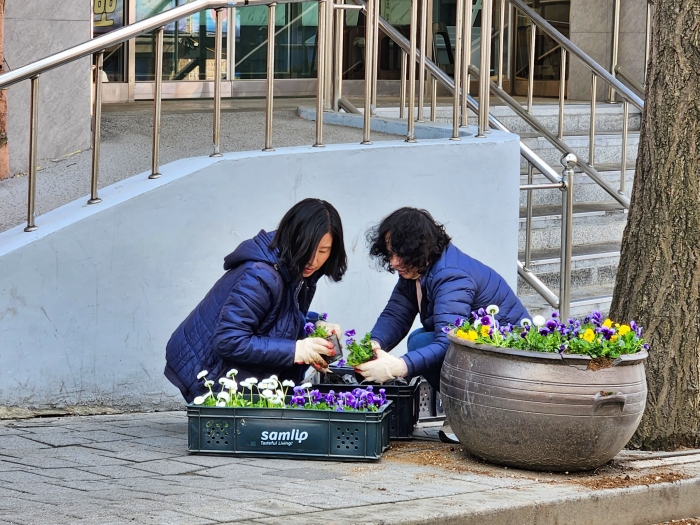 직원들은 주민들의 통행이 잦은 나들잇길과 주요 거점에 정성을 다해 꽃을 심어 보행 환경을 밝게 개선했으며, 삭막했던 가로변을 화사하게 탈바꿈시켜 지나가는 시민들의 눈길을 사로잡았다.