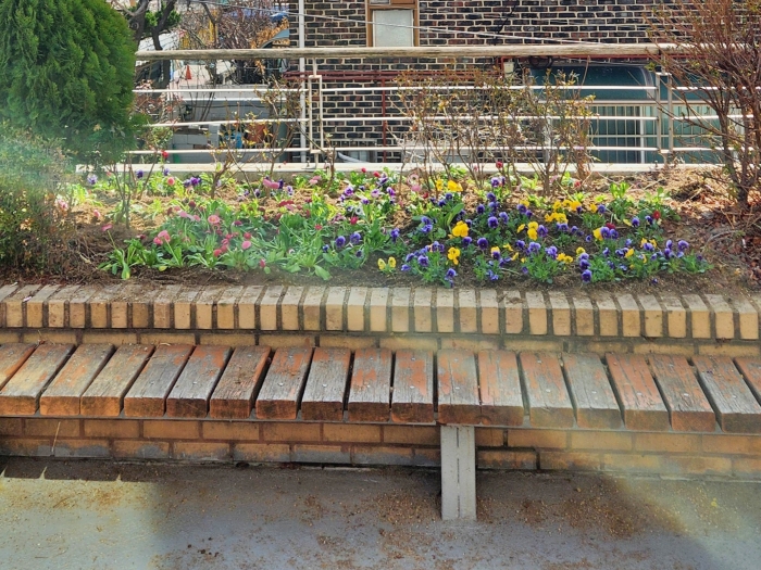 ▲ 봄을 맞아 화단을 정비하며 정성스럽게 꽃묘를 식재하는 모습