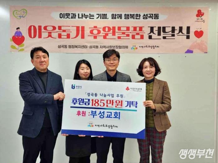 부천시 오정구 성곡동(동장 김송희)은 지난 29일 부성교회에서 성탄절 헌금으로 마련된 성금 185만 원을 기탁했다고 밝혔다.