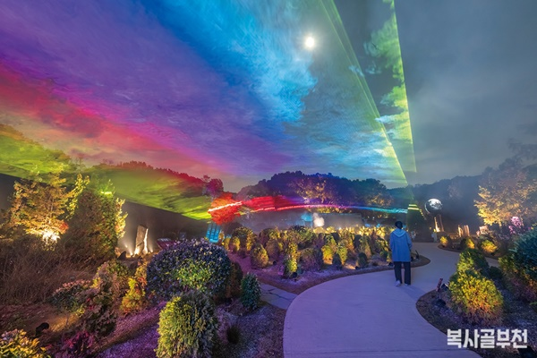 도시의 어둠이 내리자 숲이 빛으로 깨어난다. 부천자연생태공원 숲길 1.5km 구간이 빛과 디지털콘텐츠를 결합한 환상적인 미디어아트 무대로 변신한다. 부천 루미나래는 ‘도화몽(桃花夢, 복사꽃의 꿈)’을 테마로 한 12가지 코스로 조명 하나, 그림자 하나가 발걸음을 붙잡고, 걷다 보면 어느새 사진을 찍고, 추억을 남기게 된다.