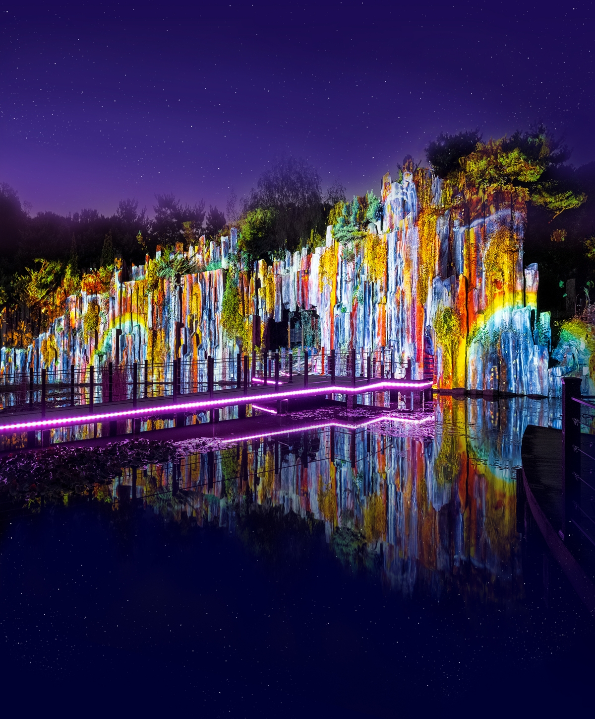 ▲ 절리폭포에 투영된 프리쇼 ‘기상낙원’ 모습