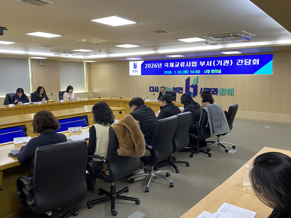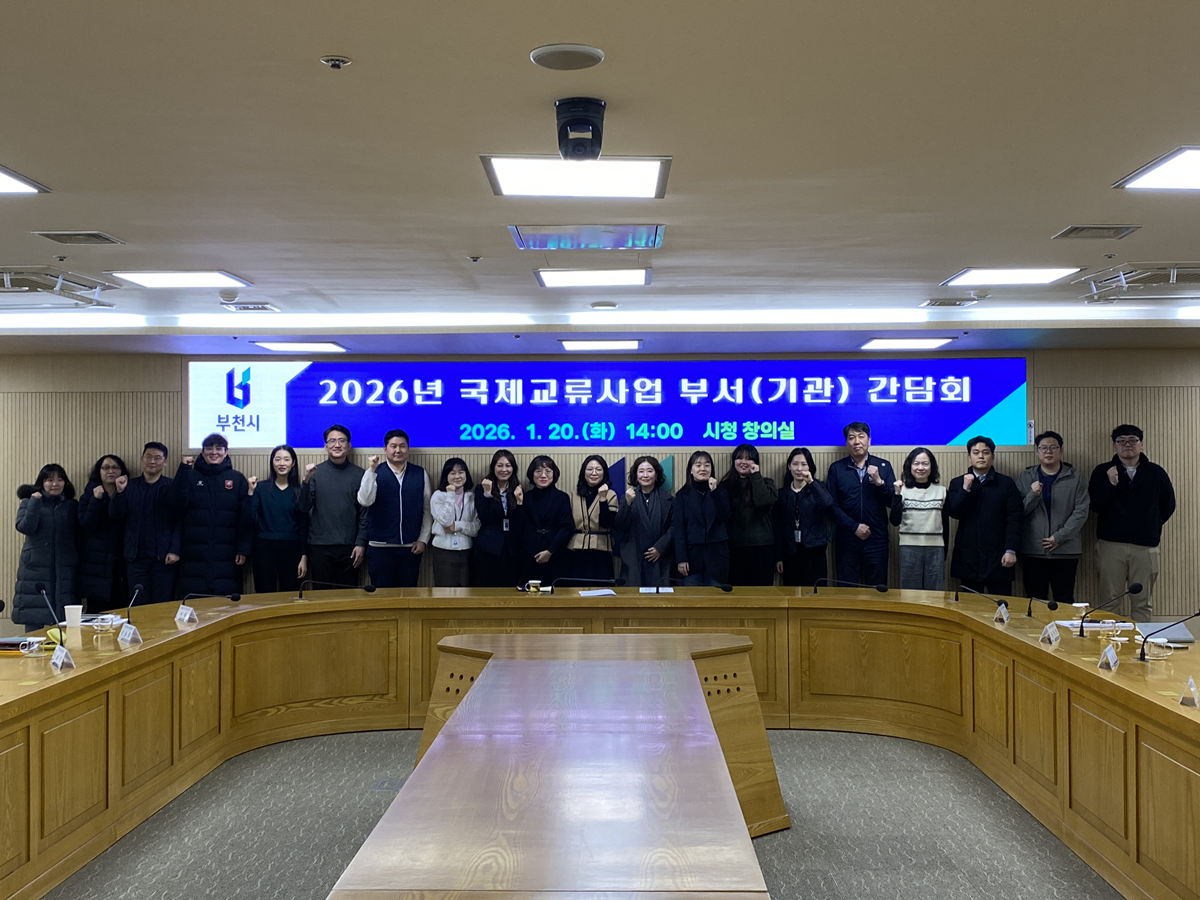 부천시는 지난 20일 시청 창의실에서 ‘2026년 국제교류사업 부서(기관) 간담회’를 열고, 연간 교류사업 계획을 공유하며 부서·기관 간 협업 방안을 논의했다. 이날 간담회에는 국제교류 및 협업 관련 부서와 유관기관 팀장과 실무자가 참석해, 올해 국제교류사업 추진 방향을 점검하고 부서·기관별 사업계획을 발표하며 주요 내용을 공유했다.