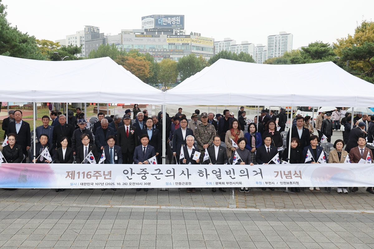 부천시는 지난 26일 부천시 원미구에 소재한 안중근공원에서 ‘안중근 의사 의거 제116주년 기념식’을 열었다. 이번 행사는 광복 80주년을 맞아, 1909년 하얼빈에서 조국의 자주독립을 위해 의거를 단행한 안중근 의사의 애국정신과 평화사상을 기리고 그 뜻을 시민과 함께 계승하기 위해 마련됐다.