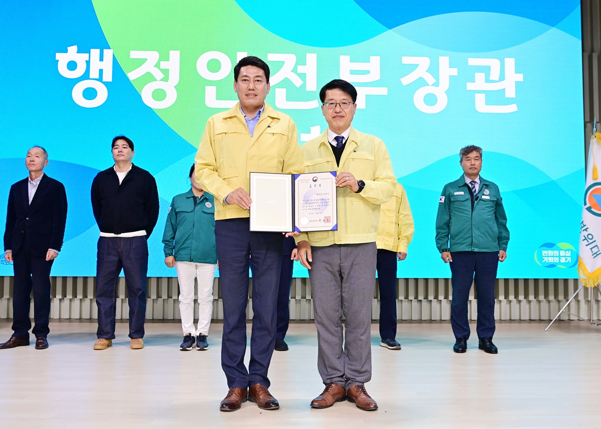 ▲ 재난안전과장(왼쪽)과 경기도 행정2부지사가 표창 수상 후 기념 촬영을 하고 있다.