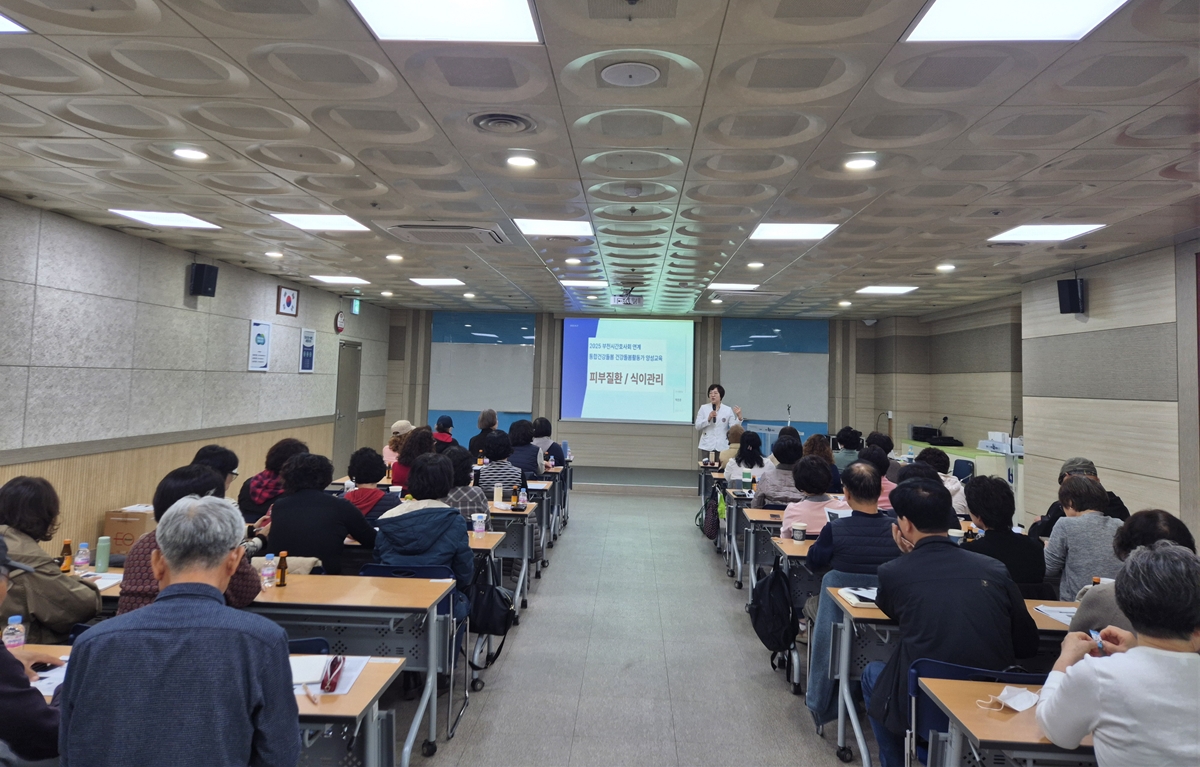첫 교육에서는 피부질환과 식이관리 관련 기본 건강관리 교육이 진행됐으며 피부질환 교육은 욕창 예방과 대상포진 관리, 고혈압·당뇨병 환자에게 주의가 필요한 피부질환과 그에 따른 관리법을 중심으로 이뤄졌다. 식이관리 교육에서는 식중독 예방을 위한 식품 구매·보관 요령과 함께 고혈압·당뇨병 관리에 도움이 되는 식단 관리방법 등을 다뤘다.