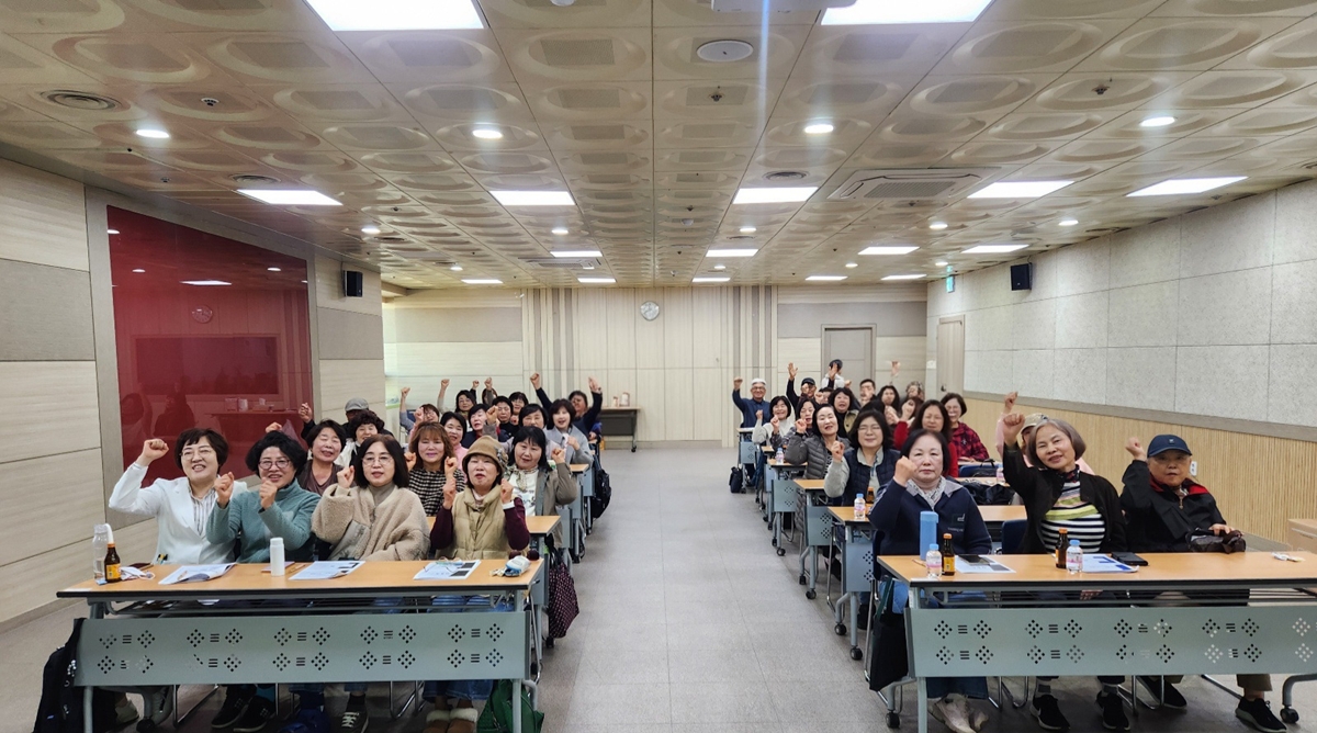 ▲ 교육에 참여한 건강지킴이가 단체 사진을 찍고 있다.