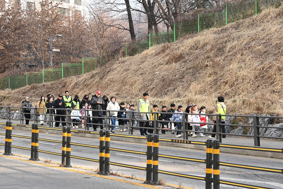 ‘워킹스쿨버스’는 등교 방향이 같은 어린이들이 지정된 정류장에 모이면 안전교육지도사가 동행해 학교까지 함께 이동하는 어린이 보행 안전 프로그램이다. 이번 현장 점검에서는 통학로 안전관리 실태를 중심으로 보도블록 상태, 횡단보도 신호 체계, 안전펜스 설치 여부 등 통학로 주변 시설 전반에 대한 점검이 이뤄졌다.