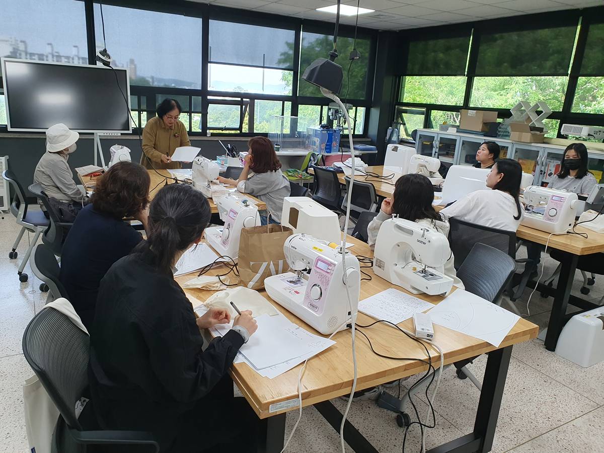 ▲ 청년들이 원미청정구역에서 메이커스페이스 재봉틀 수업을 받고 있다.