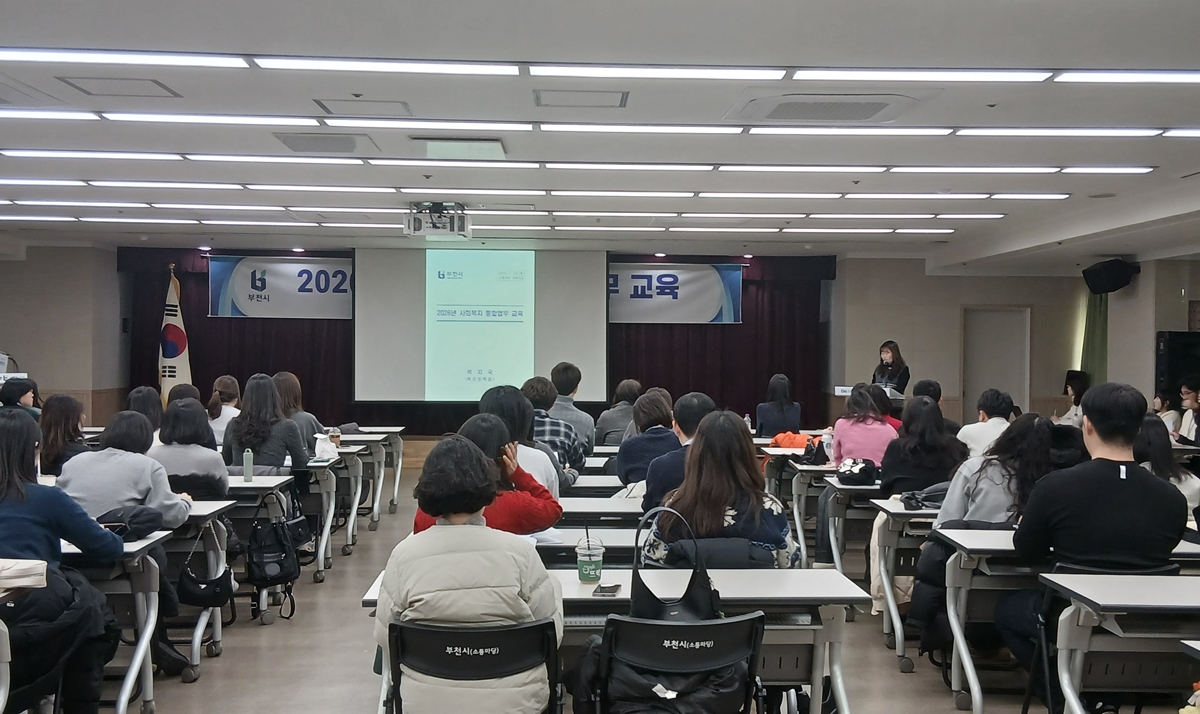 부천시는 지난 29일 구·동 사회복지 업무담당자 60여 명을 대상으로 ‘2026년 사회복지 통합업무 교육’을 실시했다. 교육은 국민기초생활보장사업 등 올해부터 달라지는 주요 제도 개편 사항을 중심으로 현장 적용에 필요한 실무 내용을 다뤘다.