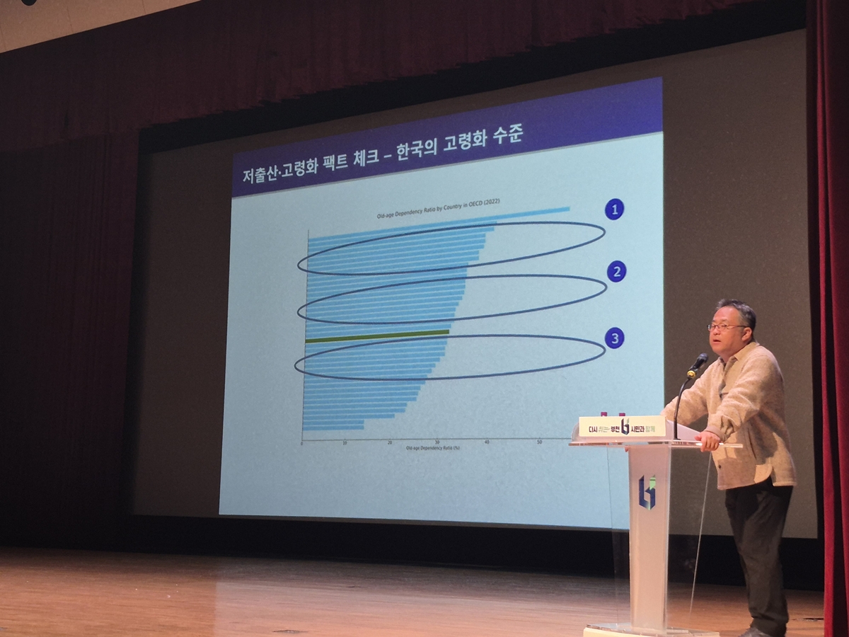 ▲ 이상림 강사가 한국의 고령화 수준에 관한 설명하고 있다.