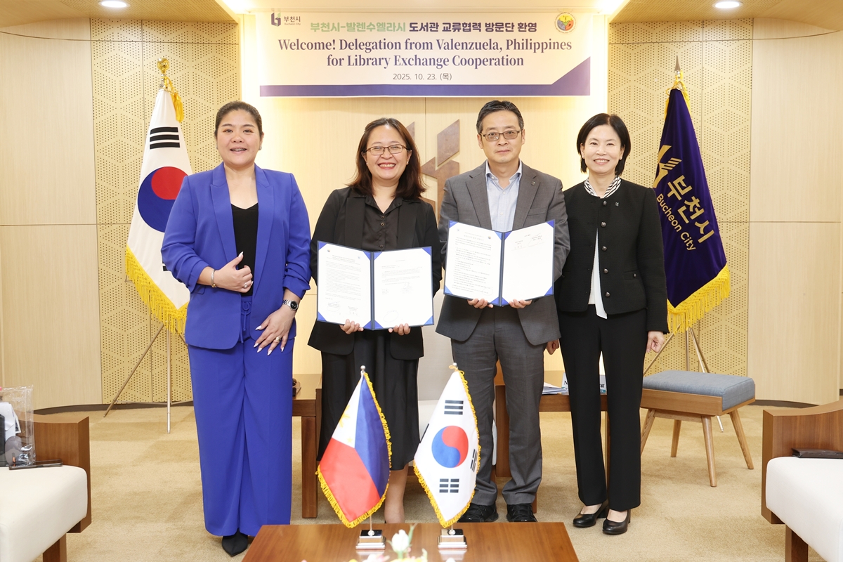 부천시는 10월 23일부터 26일까지 3박 4일 일정으로 국외 교류도시인 필리핀 발렌수엘라시 실무단의 부천 방문에 맞춰 공식 교류 일정을 진행한다. 이번 방문에는 발렌수엘라시 시립도서관장과 홍보실장이 함께했다.