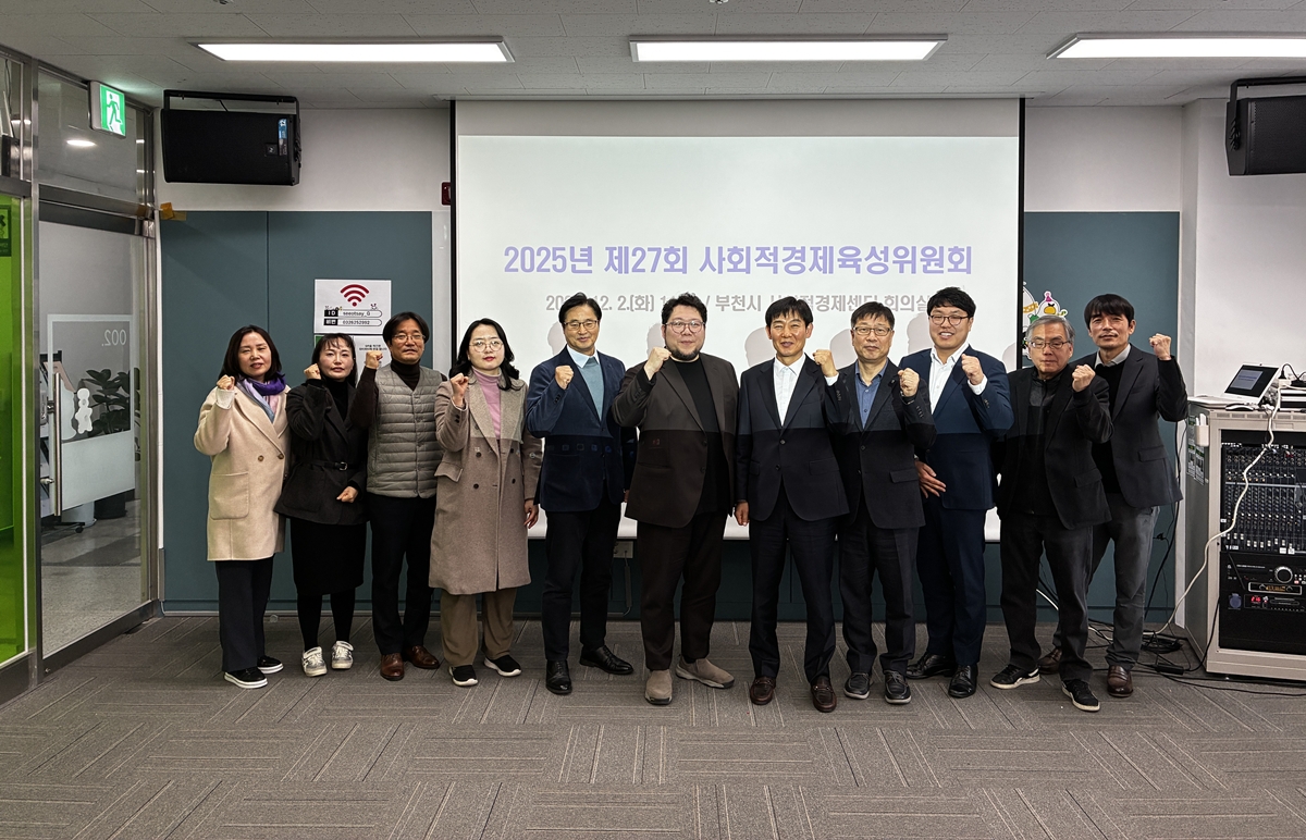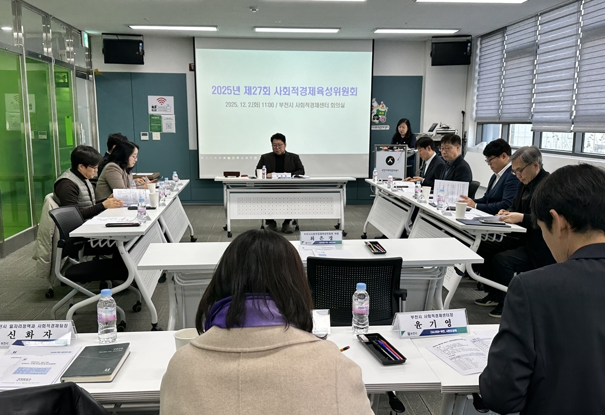 부천시는 지난 2일 부천시 사회적경제센터 4층 회의실에서 ‘제27회 사회적경제육성위원회 회의’를 열었다. 이날 회의에는 임권빈 부천시 경제환경국장과 이종문 부천시의원 등 10명이 참석했다.