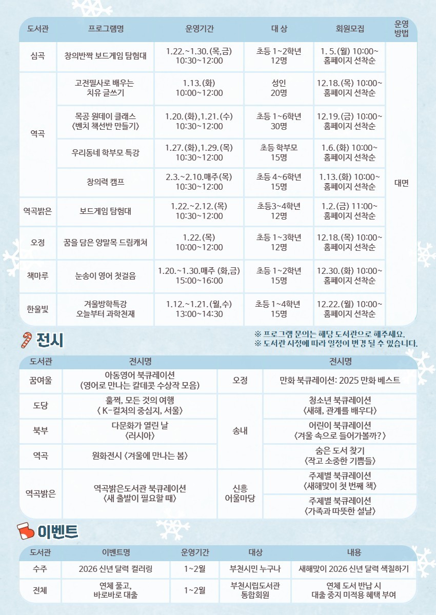 ▲ 부천시립도서관 겨울방학 프로그램 안내 이미지