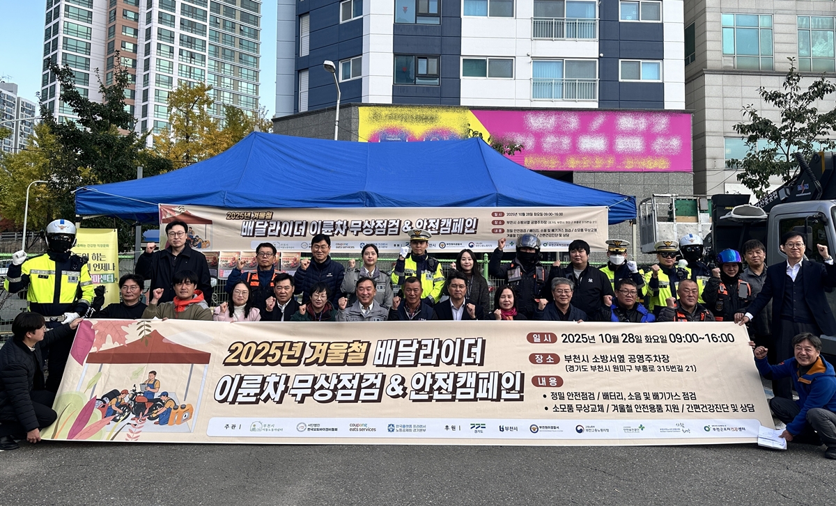 부천시는 지난 28일 부천소방서 옆 공영주차장(부흥로 315번길 21)에서 겨울철 배달라이더 안전사고 예방을 위한 ‘배달라이더 이륜차 무상점검 및 안전인식개선 캠페인’을 열었다.