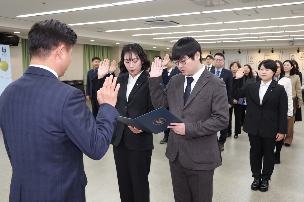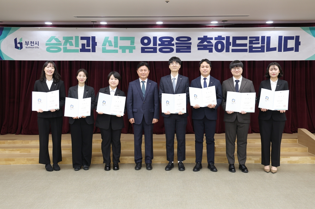 부천시는 지난 23일 시청 소통마당에서 ‘2026년 1월 정기인사 임용장 수여식’을 열고, 3급 승진 1명을 비롯해 4급 승진 2명, 전보 3명, 5·6급 승진 17명, 신규 임용 7명 등 총 30명에게 임용장을 수여했다.