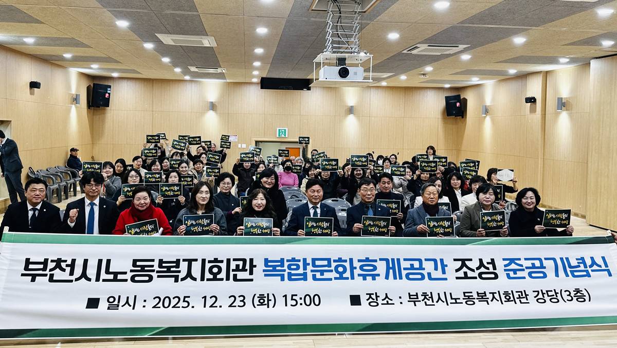 부천시는 지난 23일 ‘노동복지회관 복합문화휴게공간 조성사업’ 준공 기념식을 열었다. 이날 행사에는 조용익 부천시장, 김병전 부천시의회 의장, 도의원, 시의원, 지역주민 등 100여 명이 참석했다.