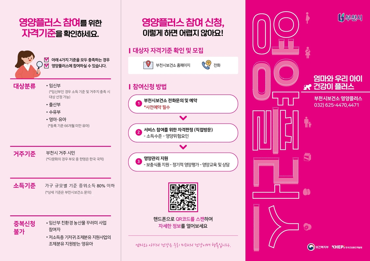 부천시는 영양 위험요인을 가진 대상에게 영양상담과 교육을 지원하고 맞춤형 보충식품을 제공하기 위해 ‘2026년 영양플러스 사업’ 대상자를 모집한다. 영양플러스 사업은 영양위험요인에 놓인 임산부와 영유아의 영양 문제를 해소하고 평생 건강을 유지할 수 있도록 돕는 보충식품 지원 중심의 영양지원 제도다.