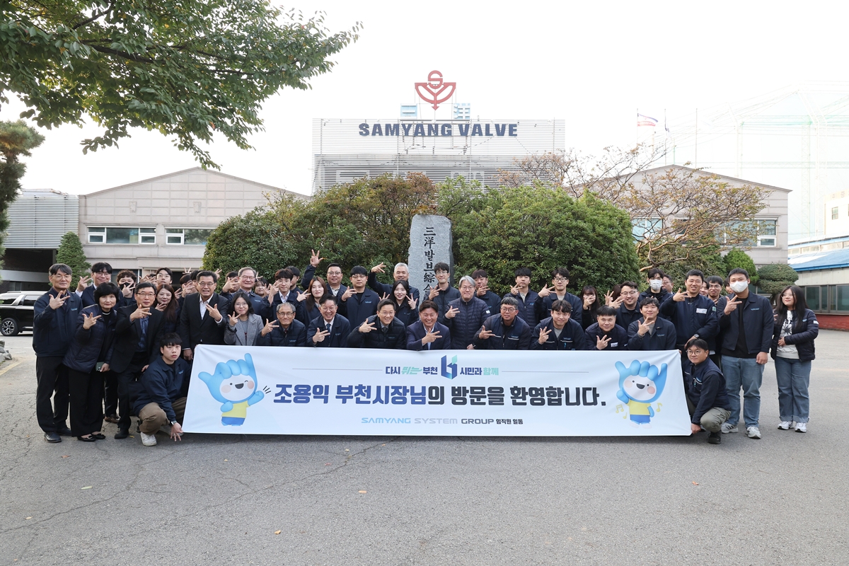▲ 기념 촬영을 하는 조용익 부천시장과 ㈜삼양발브종합메이커 임직원들