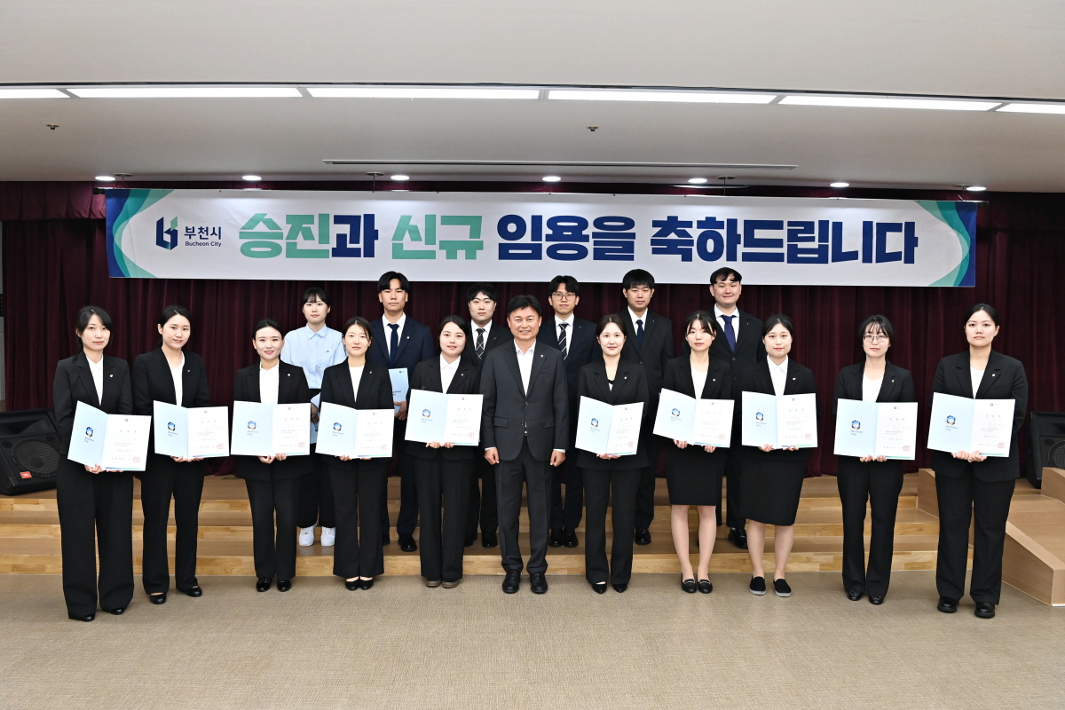 조용익 부천시장은 “승진을 축하하며, 부천시 공직사회의 새로운 가족이 된 신규 공무원 여러분을 환영한다”며 “앞으로 동료들과의 협업과 소통을 통해 시민에게 신뢰받는 공직자가 되어주길 바란다”고 말했다.