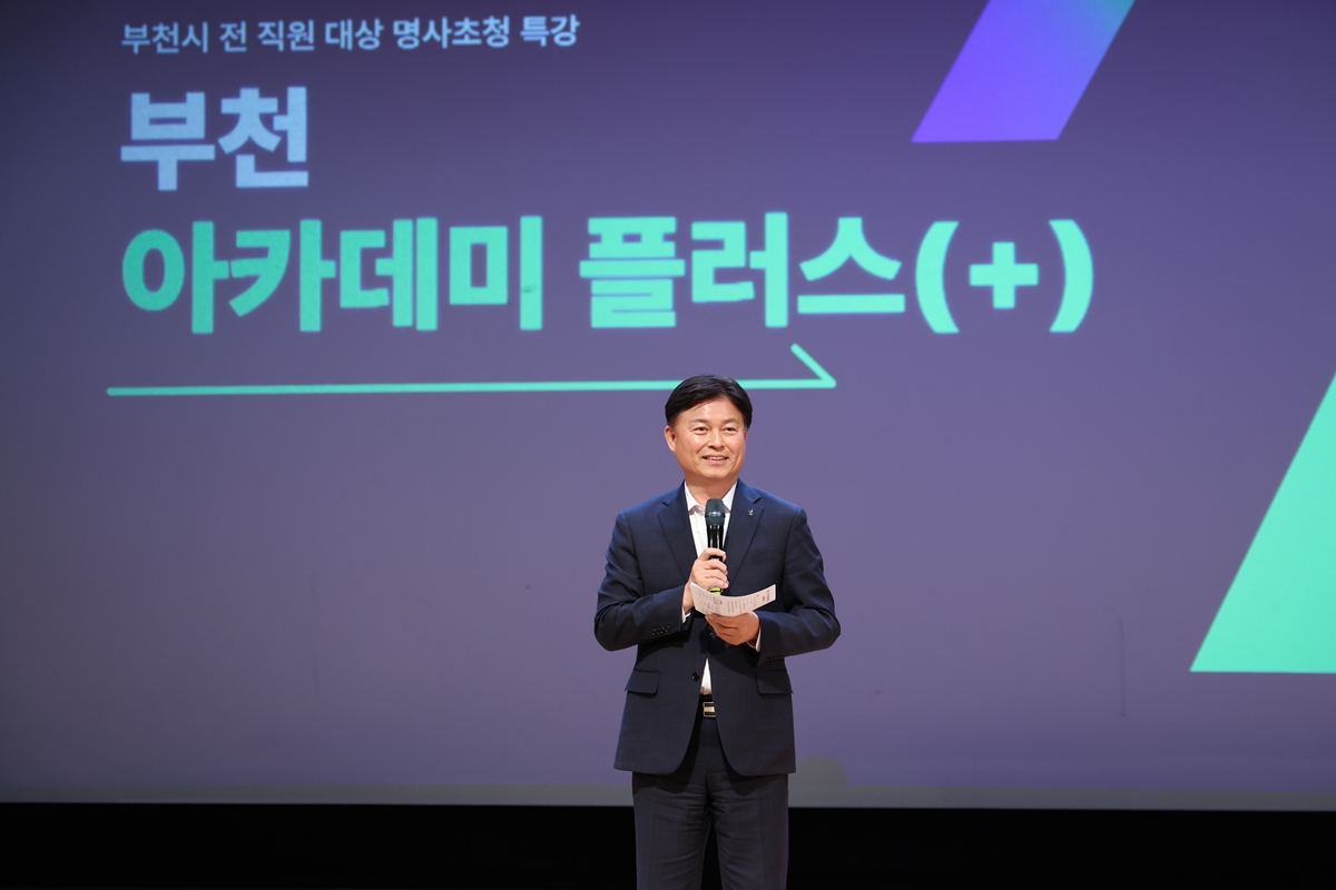 ‘부천 아카데미 플러스(+)’는 부천시가 2025년부터 분기별로 운영 중인 명사 초청 강연 프로그램으로, 공직자가 시정 전반에 대한 통찰과 전문성을 넓히고 미래 변화에 능동적으로 대응할 수 있도록 각 분야 최고 연사를 초청해 진행하고 있다.