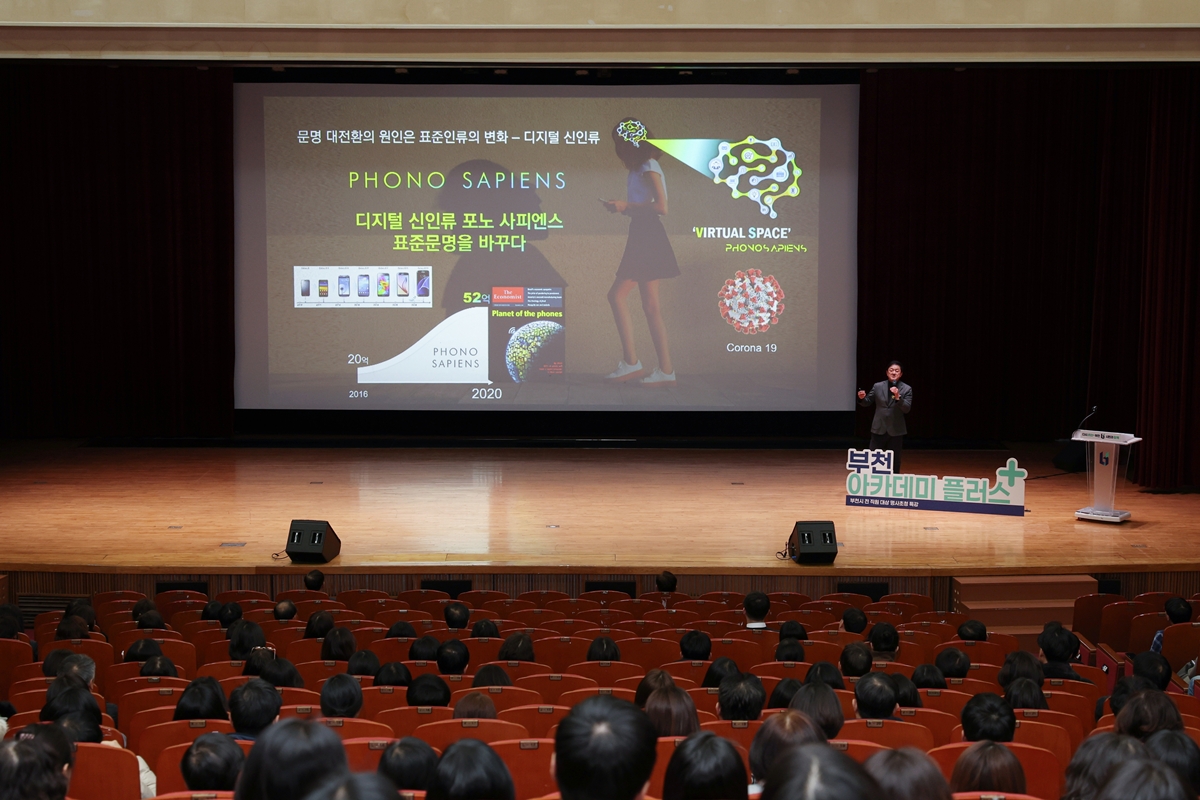 부천시는 지난 19일 부천시청 어울마당에서 부천시 전 직원을 대상으로 조용익 시장의 인사말과 함께 ‘부천 아카데미 플러스(+)’ 세 번째 강연을 열었다.