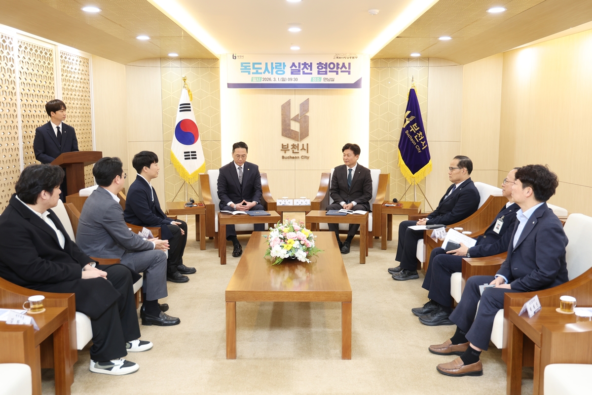 부천시는 3월 1일 시청 만남실에서 (사)독도사랑운동본부와 지방자치단체 최초로 ‘독도사랑 실천 협약’을 체결하고 독도 수호 활동에 나섰다.