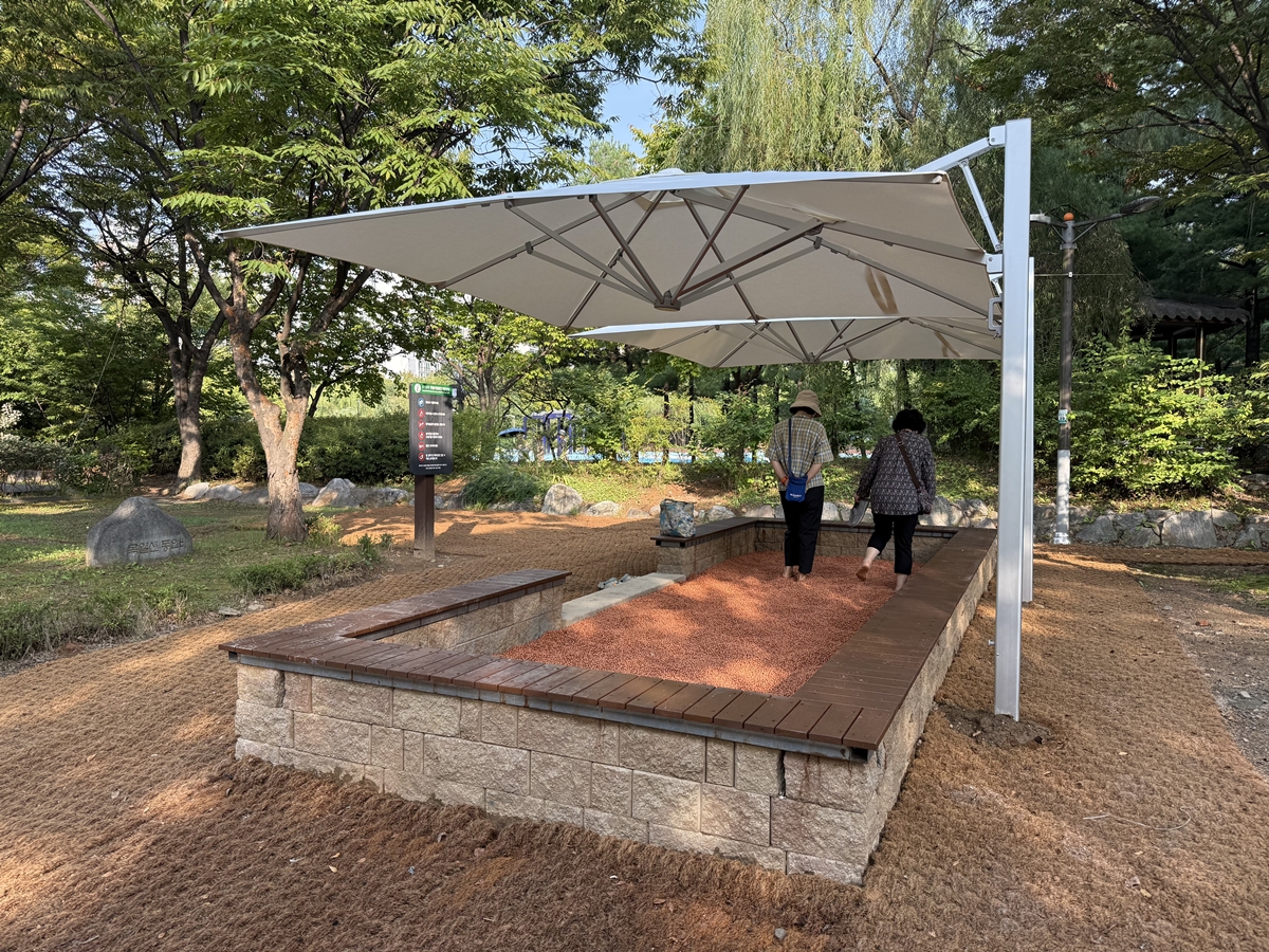 특히 새롭게 조성한 맨발길에는 세족장, 신발장, 벤치 등 편의시설을 확충해 이용 편의를 높였다. 중앙공원 맨발길에는 친근하고 즐거운 분위기 속에서 맨발길 에티켓을 자연스럽게 알릴 수 있도록 ‘맨발길 에티켓송’을 제작해 송출하고 있다.