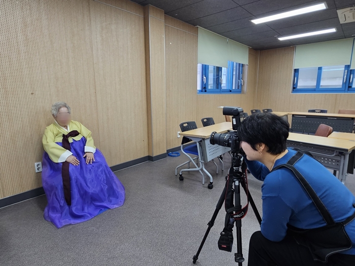 ▲어르신이 한복을 곱게 입으시고 촬영에 임하고 계신 모습