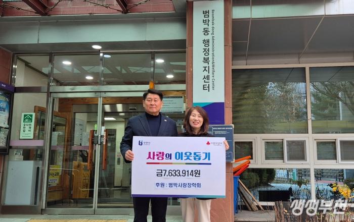 부천시 소사구 범박동(동장 전미애)은 범박사랑장학회(회장 정연흥)가 올해 마지막 장학금 700여만 원을 사회복지공동모금회에 지정기탁하며, 지난 15년 간 이어온 장학사업을 공식 종료했다고 26일 밝혔다.