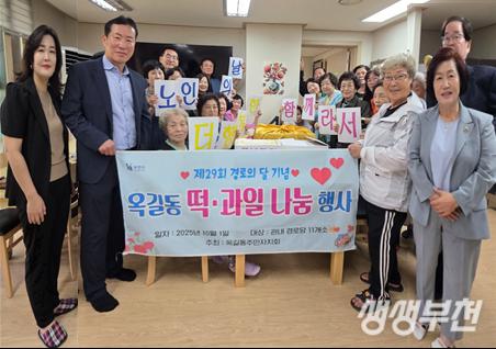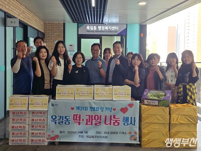 부천시 소사구 옥길동(동장 이호성)은 10월 ‘노인의 달’을 맞아 주민자치회(회장 최대호) 주관으로 관내 11개 경로당을 방문해 떡과 과일 등 간식꾸러미 나눔 행사를 진행했다고 밝혔다.