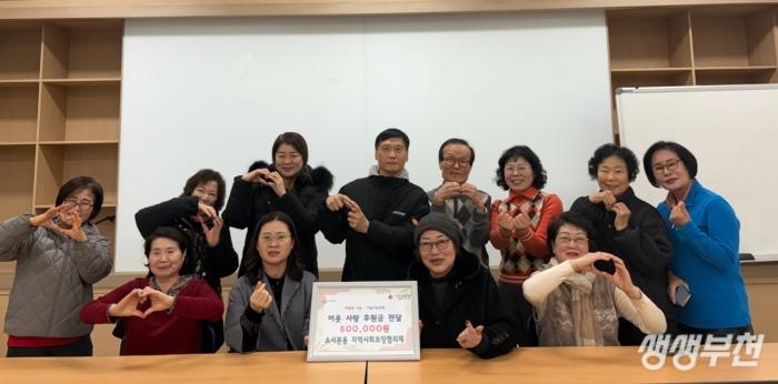 부천시 소사구 소사본동(동장 이영미)은 지난 15일 소사본동 지역사회보장협의체(위원장 박옥순)가 이웃돕기 성금 50만 원을 경기사회복지공동모금회에 기탁했다고 밝혔다.