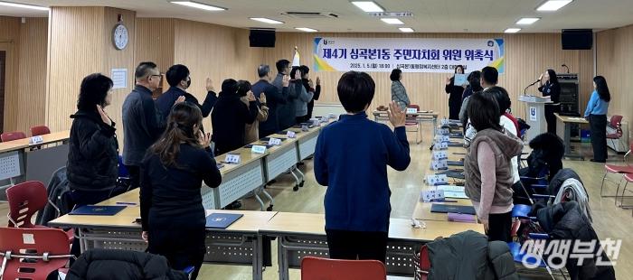 부천시 소사구 심곡본1동(동장 문화섭)은 지난 5일 제4기 주민자치회의 새로운 시작을 알리는‘제4기 심곡본1동 주민자치회 위원 위촉식 및 회의’를 개최했다.