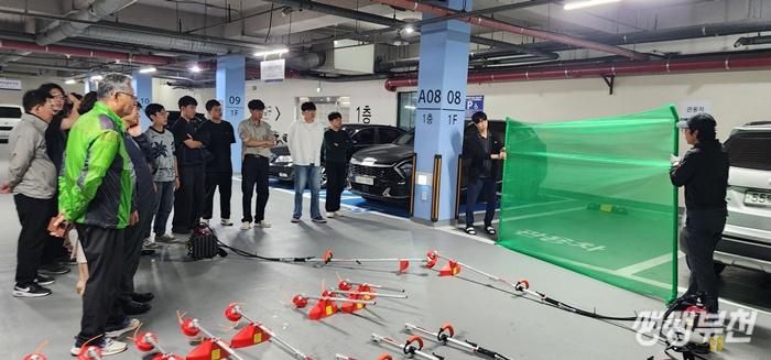 ▲예초기 배부 및 안전교육을 진행하고 있다.