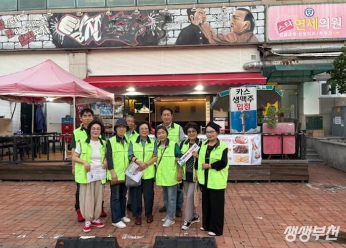 ▲ 청소년 유해환경 점검 활동을 펼친 송내1동 청소년지도위원회 위원들