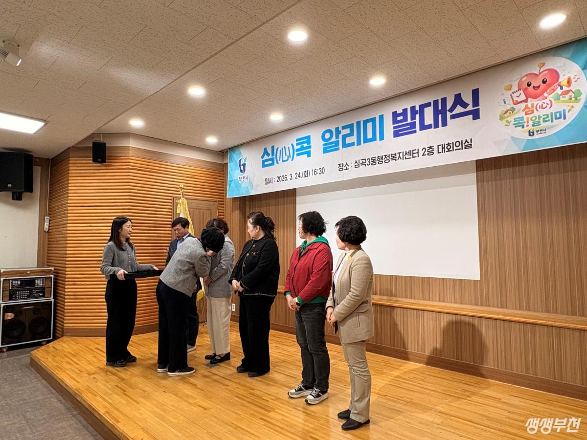 부천시 원미구 심곡3동(동장 이은주)은 3월 24일 행정복지센터 2층 대회의실에서 주민 대상 행정·복지 정보 전달 강화를 위한 민·관 합동 정보 안내단 「심(心)콕알리미」 발대식을 개최했다.