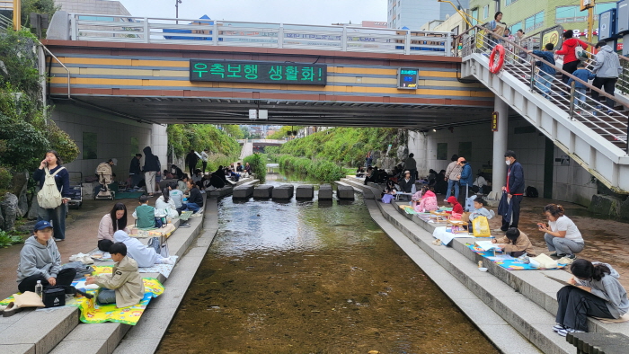 ▲ 심곡천을 배경으로 어린이들이 그림을 그리고 있다.