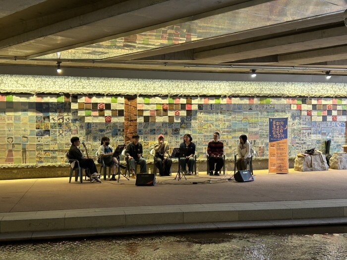 ▲ 심곡천 광장에서 관내 대학동아리 학생들이 버스킹공연을 진행하고 있다.