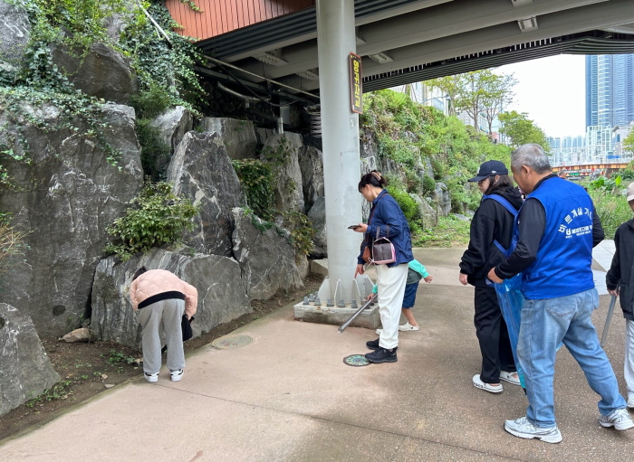▲ 그림그리기 대회 종료 후 심곡천 환경정화 활동에 참여하고 있다.