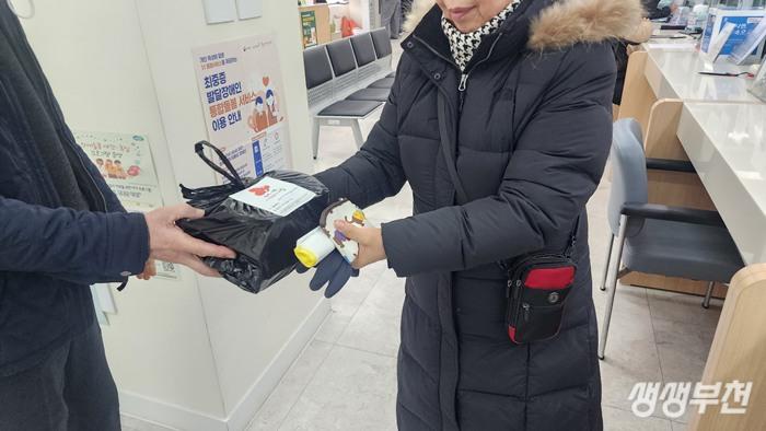 ▲ 어르신에게 전달하고 있는 모습