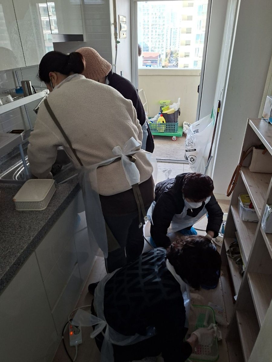 부천시 원미구 상1동 지역사회보장협의체(위원장 심순정)와 통장협의회(회장 이재봉)는 지난 27일 관내 기초생활수급 1인 장년가구를 대상으로 주거환경 개선을 위한 집 청소 봉사활동을 실시했다.