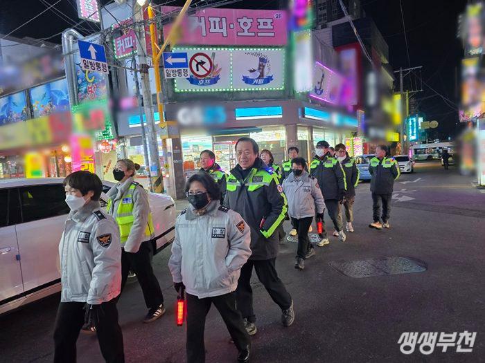 부천시 원미구 심곡1동 자율방범대(대장 유동열)는 지난 28일 지역 주민의 안전한 생활환경 유지를 위해 민·관·경 합동 야간순찰을 했다.