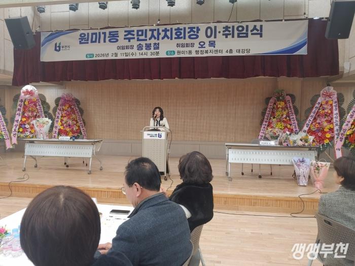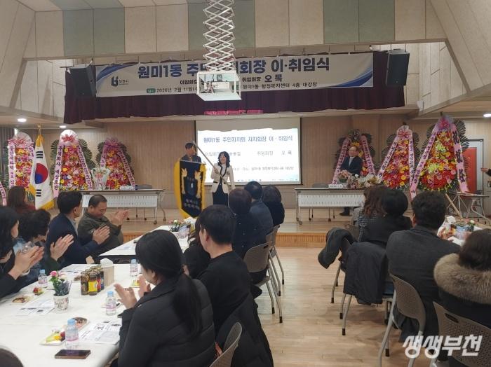 부천시 원미구 원미1동(동장 노유영)은 지난 11일, 행정복지센터 4층 대강당에서 ‘제3기·제4기 주민자치회장 이·취임식’을 개최하고, 제4기 원미1동 주민자치회의 새로운 출범을 공식적으로 알렸다.