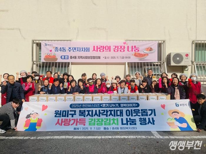 부천시 원미구(구청장 신인식)는 지난 7일에 중4동 행정복지센터에서 동절기 대비 복지사각지대 지원을 위한 민·관 협력체계 기반「현안버스터즈」 사랑가득 김장김치 행사를 실시했다.
