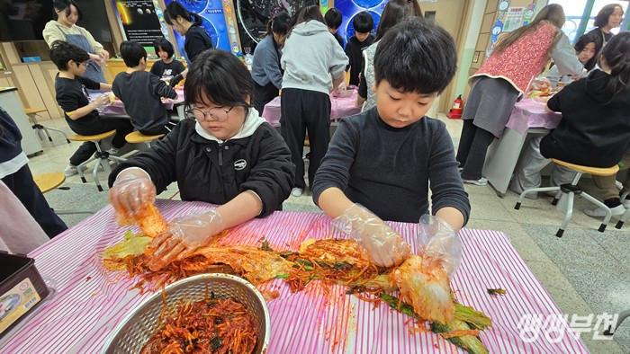김장 활동에 참여한 5학년 임재인 학생은 “김치 담그는 게 힘들었지만 누군가에게 도움이 된다고 생각하니 기분이 좋았다. 내년에도 또 참여하고 싶다”고 소감을 밝혔다.