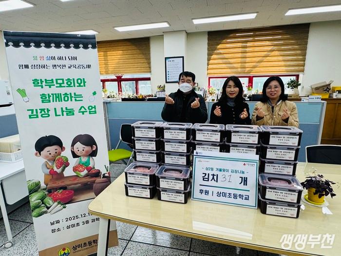 부천시 원미구 상2동(동장 이승식)은 지난 12일 상미초등학교(교장 심은영)가 김장김치 31개를 인근 경로당 및 어려운 이웃에 전달했다고 밝혔다.