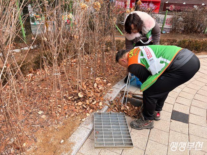 ▲ 공원 내 빗물받이 점검하는 모습