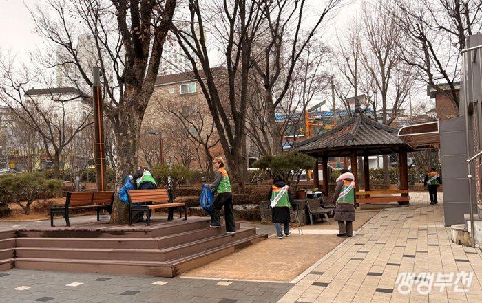 ▲ 공원 환경 정비하는 모습